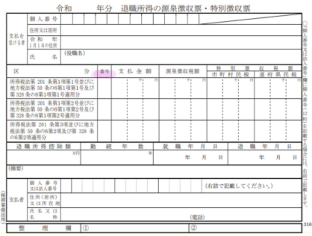 一般的な退職手当のみを支給する場合、番号欄の記入は必要ありません。