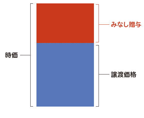 また、みなし贈与の場合、土地・家屋の時価は、相続税評価額を利用することが出来ず、通常の取引価額(時価)と譲渡価格の差額に対して贈与税が課税されます。